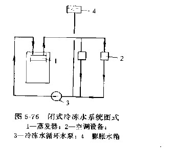 一般性空调系统普遍采用闭式冷冻水系统,即冷冻水系统不与外界空气接触而形成一密闭式循环系统(图5---76)。