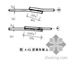 HPB235级钢筋单面焊L8d0,双面焊L4d0;HRB335、HRB400级钢筋单面焊L10d0;双面焊L5d0。
