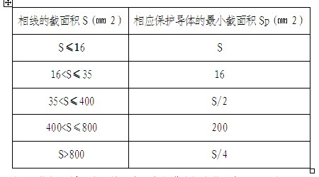 注:S指柜(屏、台、箱、盘)电源进线相线截面积,且两者(S、Sp)材质相同