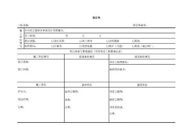 另外,工程现场的口头指令或书面指令,需转换成变更图纸或技术核定单等才能结算,尽量做到能画图的以图为依据更好。且所有需进入结算的有效文件必须有承包方、监理方、甲方等签字和盖章;若是技术变更还需设计方的确认签字盖章,特别是涉及结构和设备容量技术参数、安全等重要因素变更的,必须由设计方确认。技术变更主要解决如何做;现场核定单、签证单主要解决做了什么、做了多少、及对原合同无约定的变更内容费用作确认。