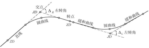定义:路线的转折点,即两个方向直线的交点,用JD来表示