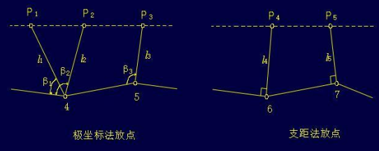 道路主点测设是利用上述准备好的数据,采用直角坐标法、极坐标法、角度交会法和距离交会法等将道路主点在现场确定下来。具体测设时,各种方法可独立或配合使用。
