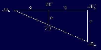 ZD为粗略定出的转点位置。将经纬仪置于ZD,用正倒镜分中法延长直线JD5ZD于JD6。若JD6与JD6重合或量取的偏差在路线容许移动的范围内,则转点位置即为ZD,这时应将JD6移至JD6,并在桩顶上钉上小钉表示交点位置。