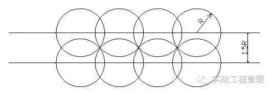 5)振捣器的插头必须均匀排列,采用行列式次序移动,每个移动位置的距离不大于振捣棒作用半径R的1.5倍(R一般为200~300mm)。行列式排列见下图。