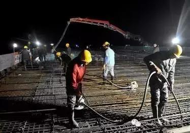 合理安排混凝土施工作业,通常夜间22:00后不准进行混凝土浇筑。需要夜间连续施工的,需要办好夜间施工证。