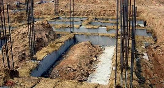 (2)基础垫层施工:基坑土方开挖至设计标高,经验槽合格后,即可采用C15混凝土浇筑垫层。若底板有防水要求,应待底板混凝土达到25%以上强度后再进行底板防水层施工;防水层施工完毕,应浇筑一定厚底的混凝土保护层,以避免进行钢筋安装绑扎时防水层受到破坏。