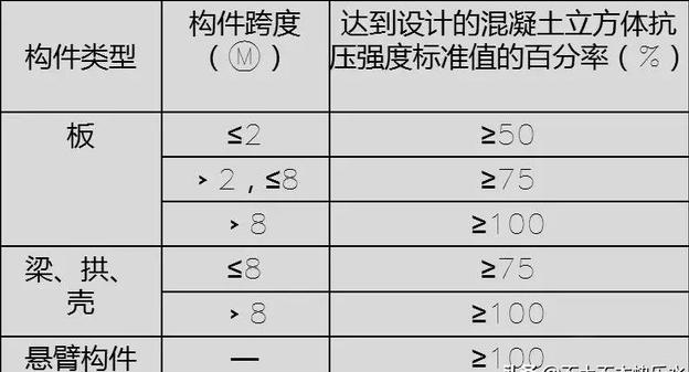1、底模及其支架拆除时的混凝土强度应符合设计要求;当设计无具体要求时,混凝土强度应符合下表4规定。