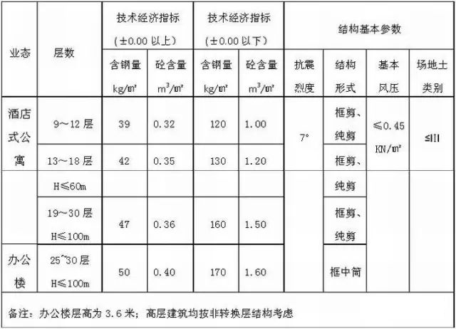 E.表中地下指标为参考指标,具体工程应根据地勘报告和设计管理中心审定的基础形式加以调整,调整后的数额列入设计合同补充条款。