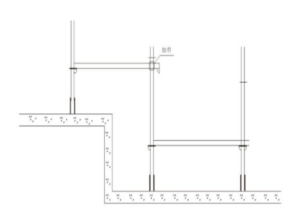 1)现象:立杆底部楼板存在降板,降板位置架体正常搭设时无法与周边架体连接形成整体。