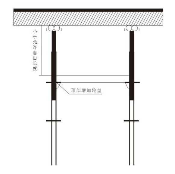 处理:在立杆顶部增加一个轮盘,增加轮盘位置可根据现场实际情况确定并保证轮盘致顶部高度小于允许自由长度,并且增加轮盘后的立杆以后仍能正常使用。