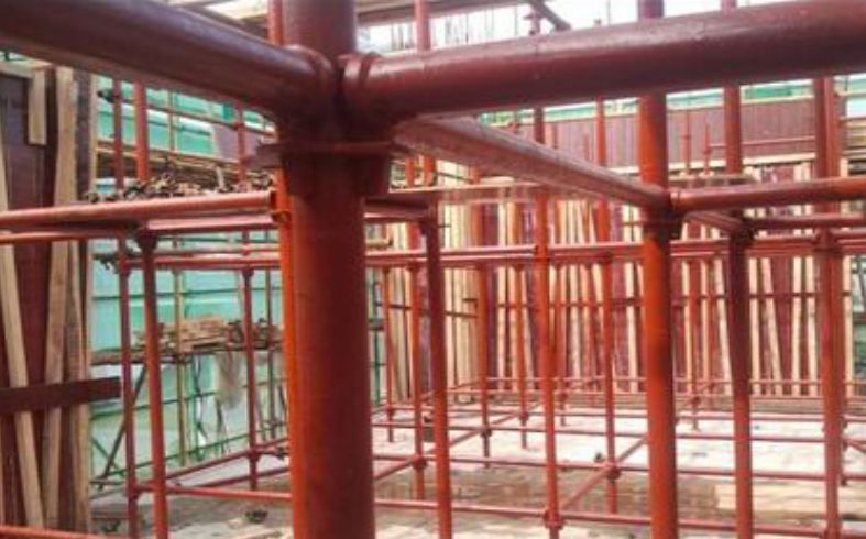 4) 横杆接头需卡紧,并且保证端部与立杆接触紧密,在架体搭设完成后及混凝土浇筑过程中,需派人对横杆紧固情况进行检查。