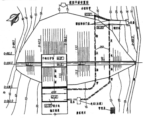 枢纽布置图主要表示整个水利枢纽在平面和立面的布置情况。它的主要作用是:作为各建筑物定位、施工放线、土石方施工以及绘制施工总平面图的依据。