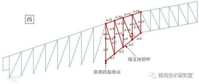 下表是连廊西侧边榀桁架中部分构件的重要性系数计算结果。由结果可见,端支座斜杆a-1的重要性较高,可作为待拆构件。