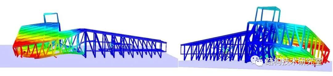 如以下某大悬挑钢结构案例中,首先通过概念判断,筛选出西南侧连廊部位、东侧电梯井部位、北侧悬挑部位等几个主要支承区域内的重要构件。