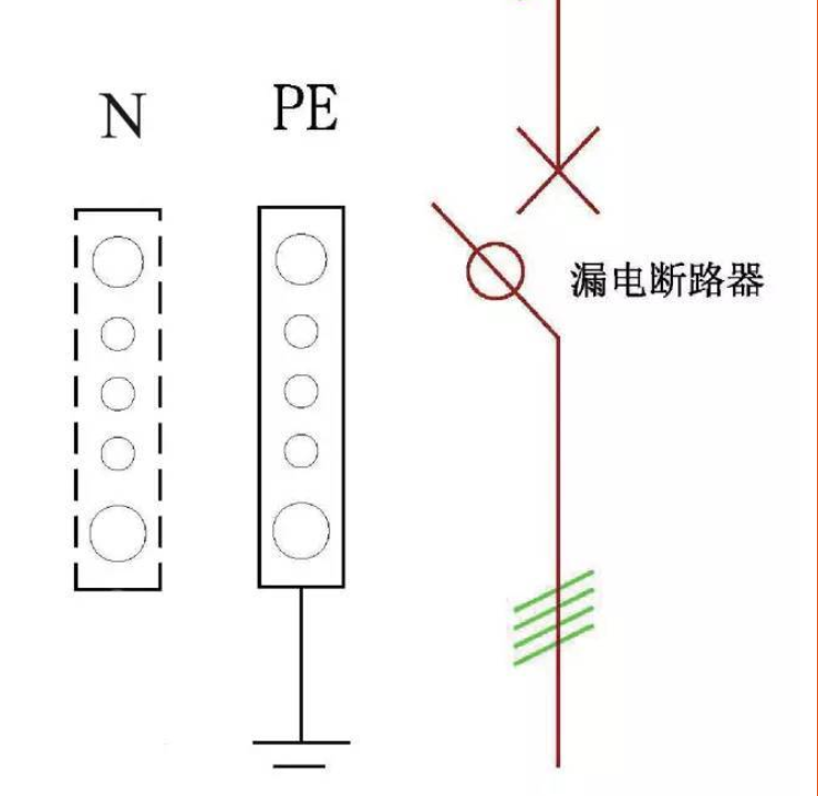 进出线中的N线必须通过N线端子板连接;PE线必须通过PE线端子板连接。(JGJ46-2005第8.1.11条)