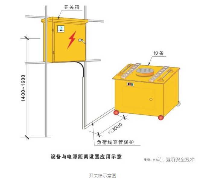 1、配电箱、开关箱应装设在干燥通风及常温场所。(JGJ46-2005第8.1.5条)