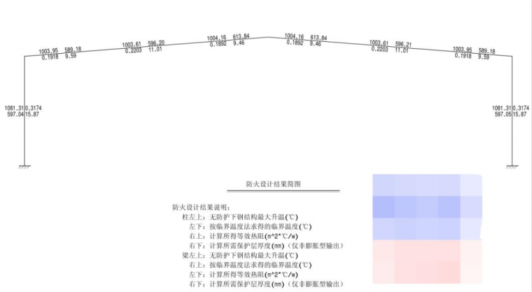 解释:程序在进行耐火验算与防火设计之后,便生成防火设计结果简图,如下图: