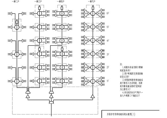 本资料为高层住宅小区有线电视及电话系统图。具体内容包括:高层住宅小区有线电视系统示意图、有线电视系统分配模式图、高层住宅电话系统图、高层住宅竖井电话电缆布线图等。共16张图纸。