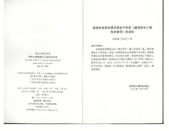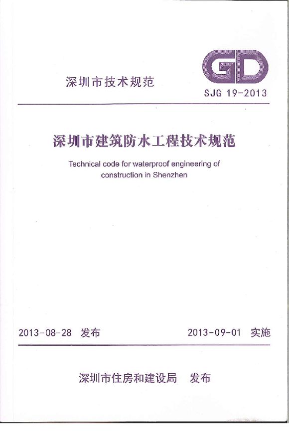 深圳市建筑防水工程技术规范SJG19-2013绝对高清新书扫描,专业级的清晰度,本规范新加聚合物防水浆料的做法。