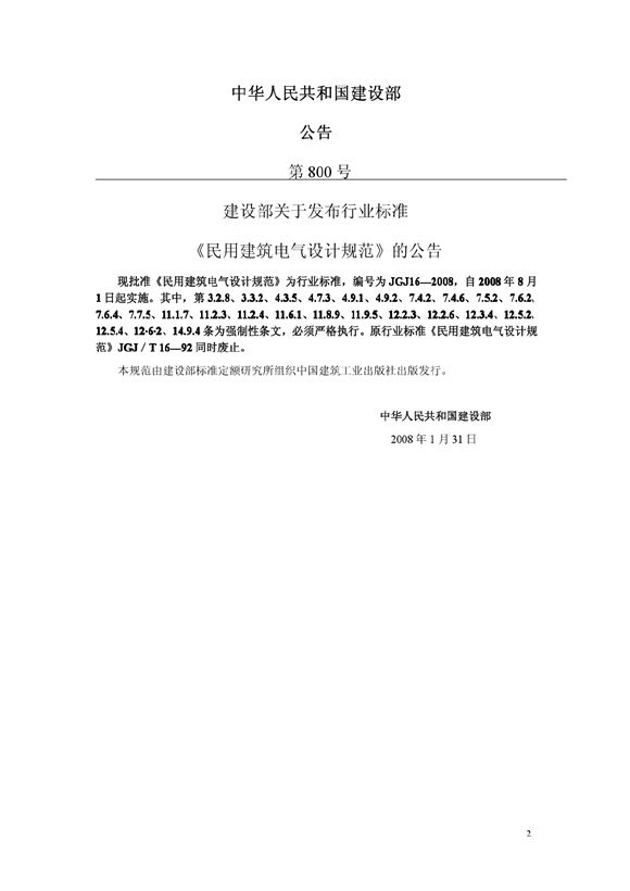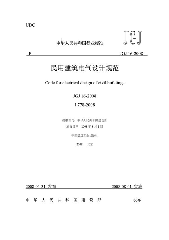 2008-JGJ16《民用建筑电气设计规范》(正式版)