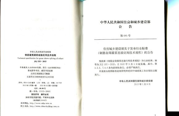 JGJ355-2015钢筋套筒灌浆连接应用技术规程