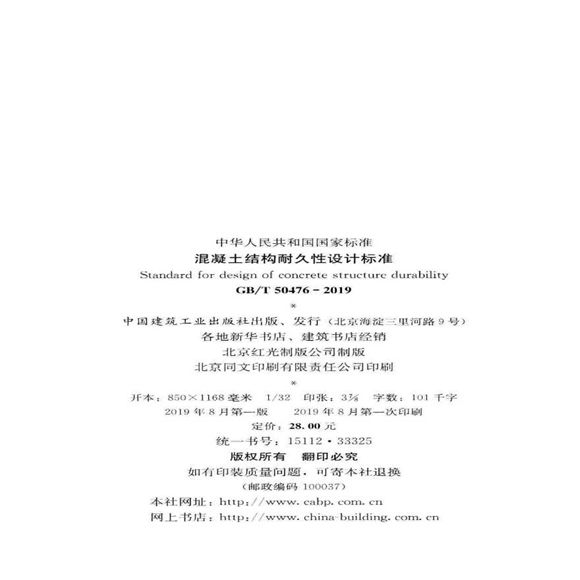GB/T 50476-2019 混凝土结构耐久性设计标准