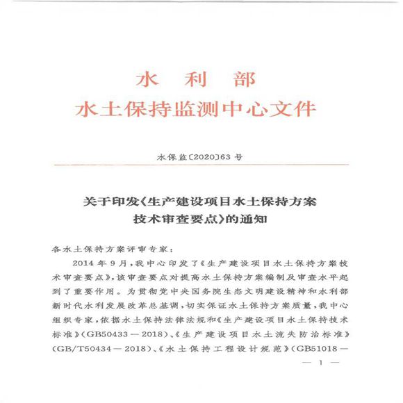 最新版的《生产建设项目水土保持方案技术审查要点》的通知(水保监〔2020〕63号,可复制)