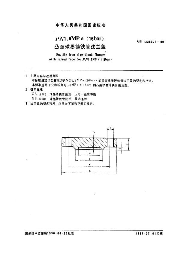 PN 1.6 MPa (16bar)凸面球墨铸铁管法兰盖 (GB 12383.2-1990)