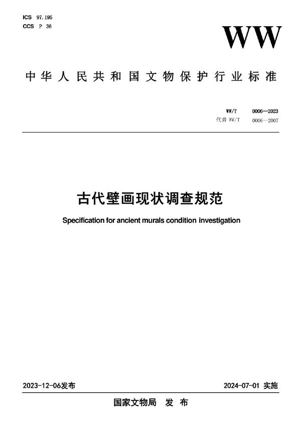 古代壁画现状调查规范 (WW/T 0006-2023)