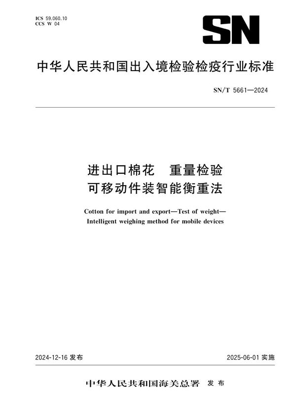 进出口棉花 重量检验 可移动件装智能衡重法 (SN/T 5661-2024)
