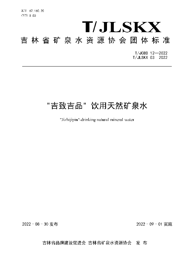 内容简介:本文件规定了“吉致吉品”饮用天然矿泉水术语和定义、技术要求、生产工艺要求、检验方法、检验规则、标志、包装、运输和贮存。本文件适用于“吉致吉品”饮用天然矿泉水生产经营活动。
