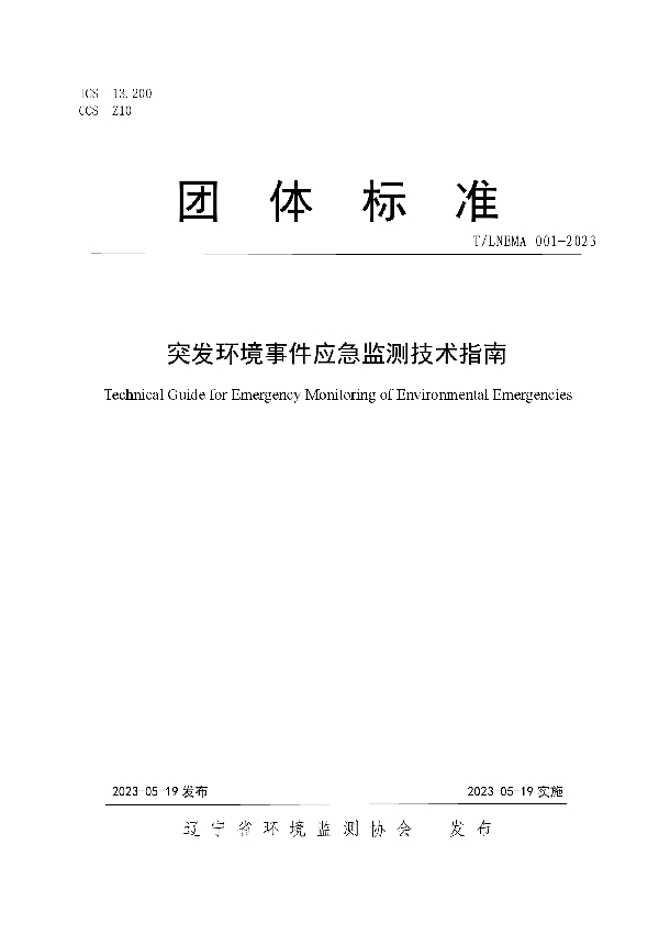 英文标题:Technical Guide for Emergency Monitoring of Environmental Emergencies