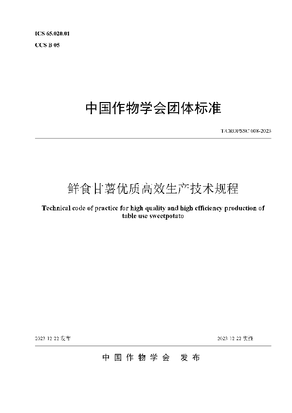 英文标题:Technical code of practice for high quality and high efficiency production of table use sweetpotato