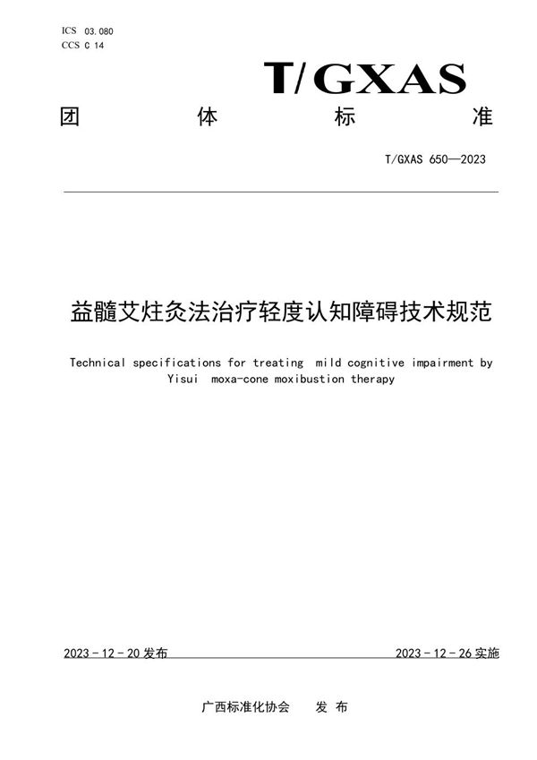 本文件适用于益髓艾炷灸法治疗轻度认知障碍。