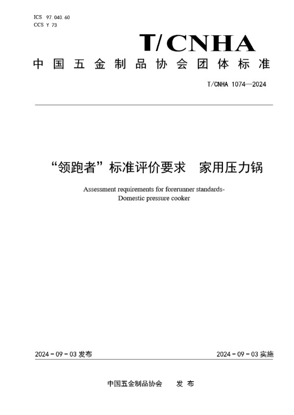 英文标题:Assessment requirements for forerunner standards- Domestic pressure cooker