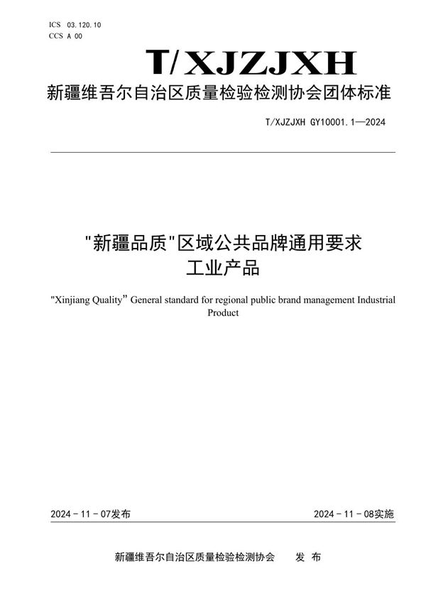 标准编号:T/XJZJXH GY10001.1—2024