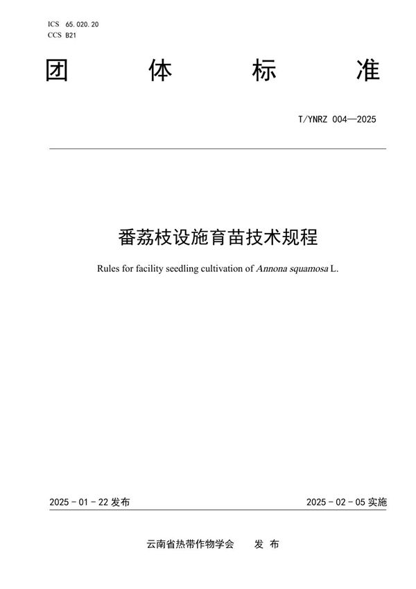 英文标题:Rules for facility seedling cultivation of Annona squamosa L.