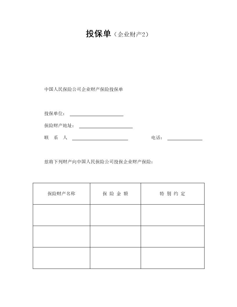 投保单(企业财产)(1页)