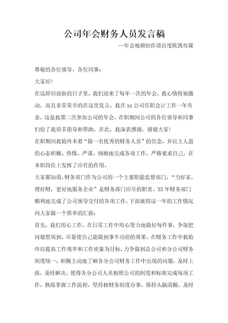 公司年会财务人员发言稿 (公司年会财务人员发言稿)(5页)
