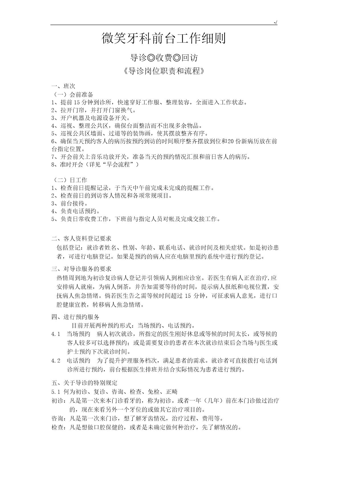 口腔门诊前台工作详细介绍 (口腔门诊前台工作流程)(13页)