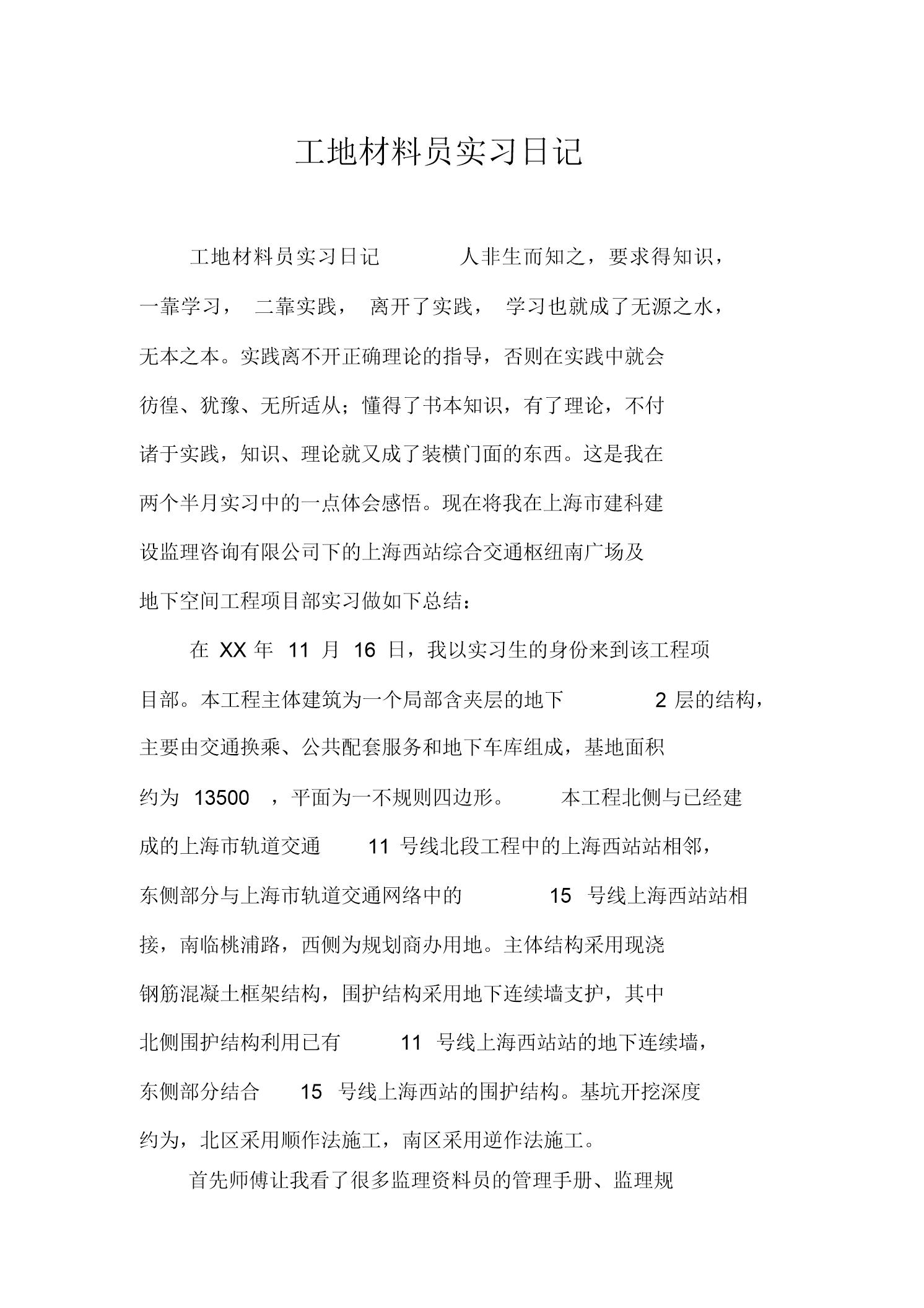 工地材料员实习日记范文 (工地材料员日记)(10页)