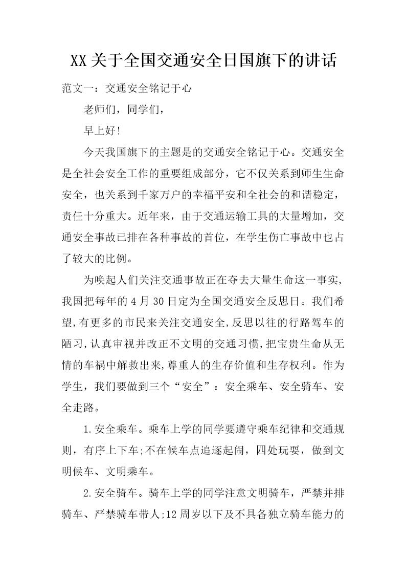 关于全国交通安全日国旗下的讲话 (关于全国交通安全日的ppt)(3页)