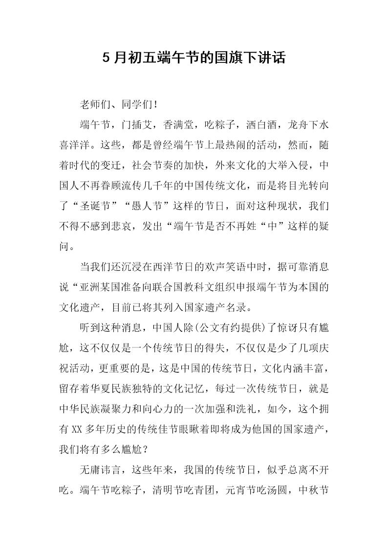 5月初五端午节的国旗下讲话 (5月初5端午节的风俗是什么)(3页)