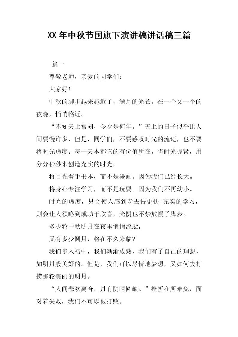 中秋节国旗下演讲稿讲话稿三篇 (中秋节国旗下演讲稿小学生)(6页)