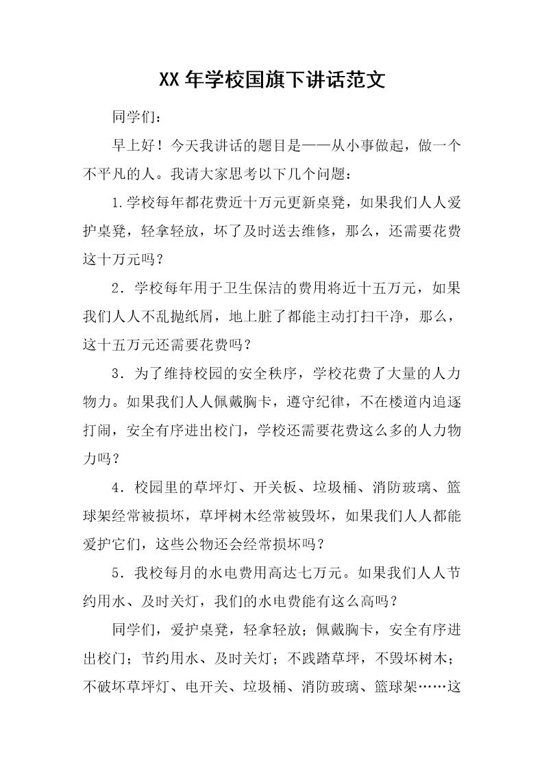 学校国旗下讲话范文 (学校国旗下讲话记录)(2页)