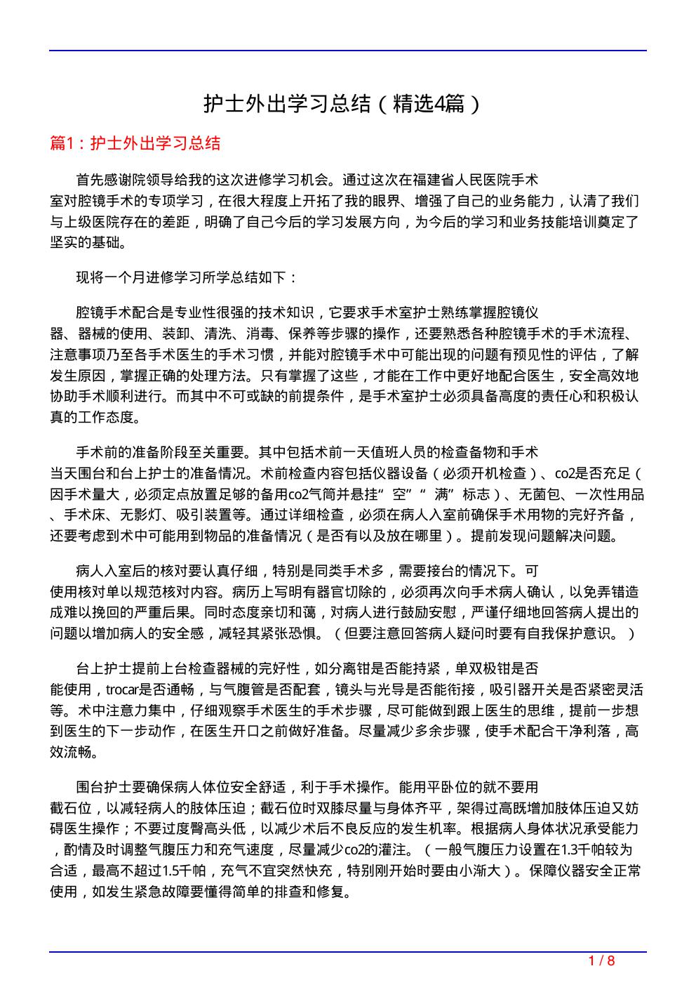 护士外出学习总结