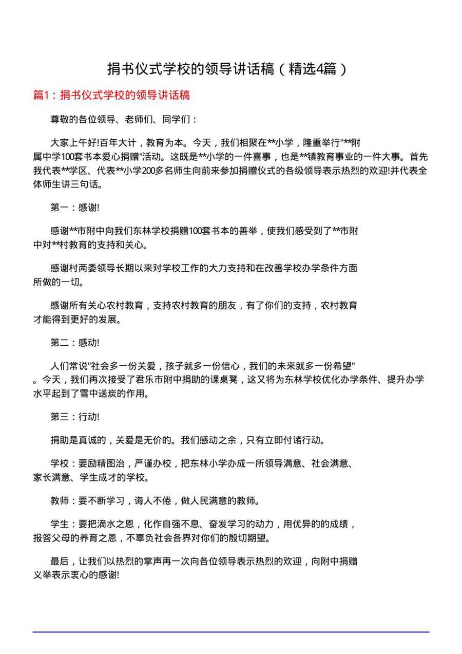 捐书仪式学校的领导讲话稿【4篇】