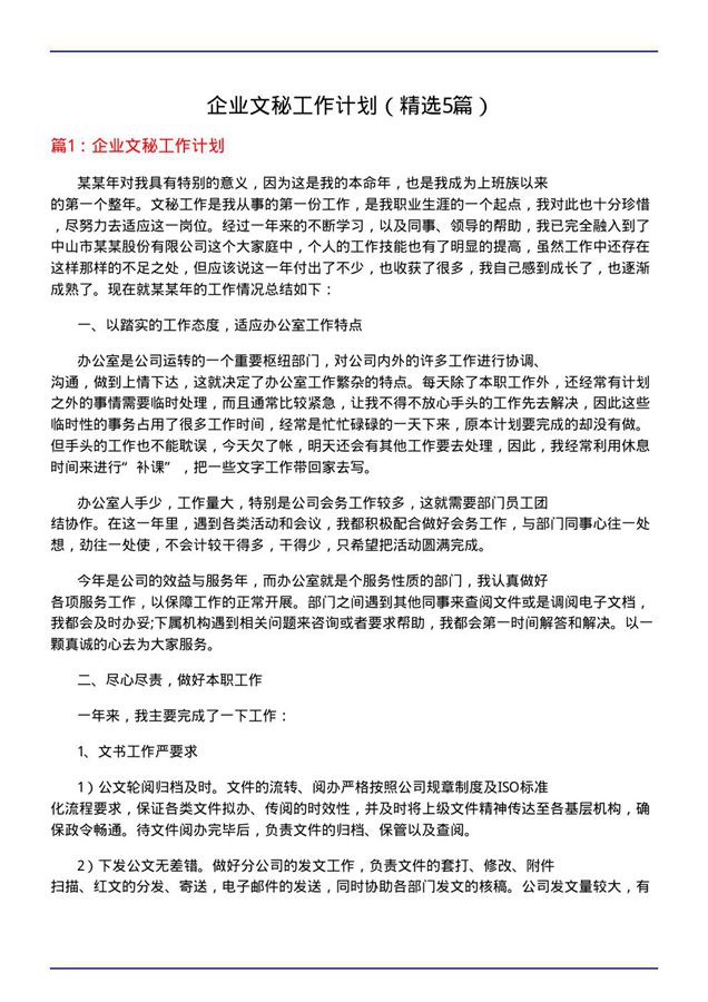 企业文秘工作计划【5篇】