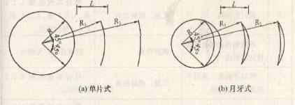 1.边长大于或等于500mm,且内弧半径与弯头端口边长比小于或等于0.25时,应设置导流叶片,导流叶片宣采用单片式、月牙式两种类型(图4.3.3);