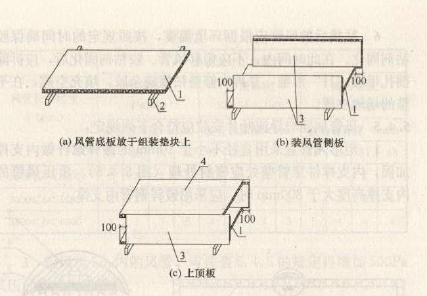 3.底板错位100mm,最后将顶板盖上,同样应与左右侧板错位100mm,形成风管端口错位接口形式(图5.4.4-1)。